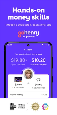 GoHenry by Acorns is the debit card & banking app for kids and teens. Young people aged 6-18 can learn about earning, saving, and smart spending with features like automated allowance, task lists, and gamified educational quizzes and videos. Then they can practice their skills in the real world with their own debit card. All while parents watch and guide with flexible parental controls. That’s why 92% of parents say their children are more money-confident since joining GoHenry.