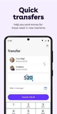 Send money anytime with scheduled allowance and instant transfers.