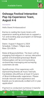 + Get gigs on-the-go: Receive push notifications and/or email alerts when you have been selected by our agents for a great Karma gig.