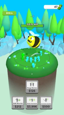 Earn cash by defeating huge enemies! Upgrade your warriors and merge them to make em even stronger!
